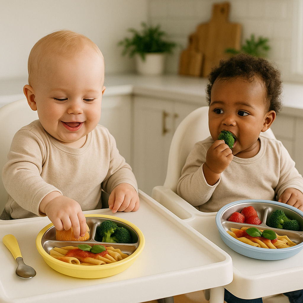 Crafted from premium stainless steel and food-grade silicone, TinyBites Duo Plate Sets bring calm to the chaos of mealtime.
