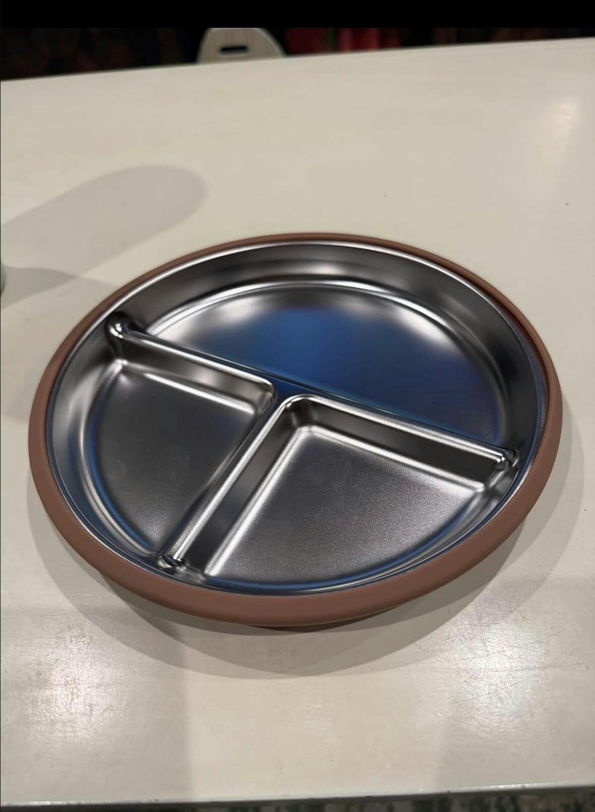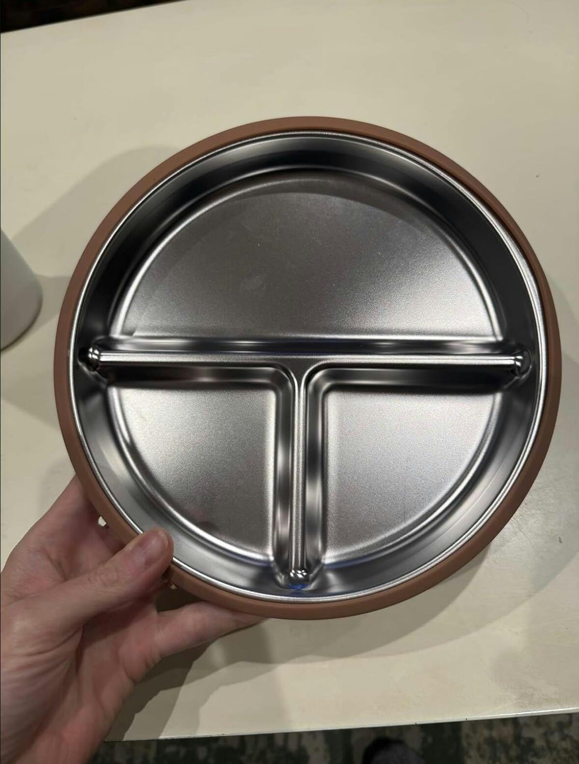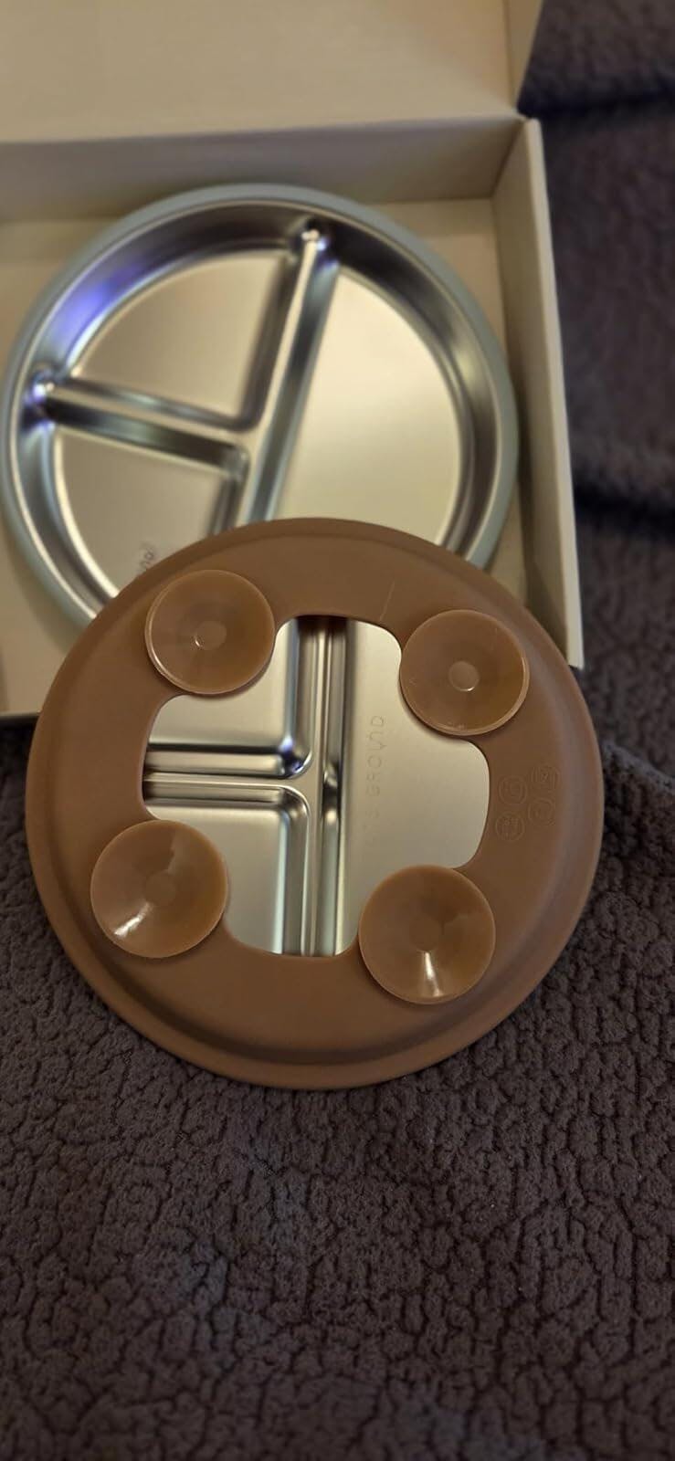 I love these plates for my toddler. They are perfect because the suction sticks really well on the table or high chair, but it also comes off when cleaning or when he doesn’t need it anymore. The stainless steel plate is pretty thick and cleans really well. This is the perfect set for any toddler with the three compartments and nice color.