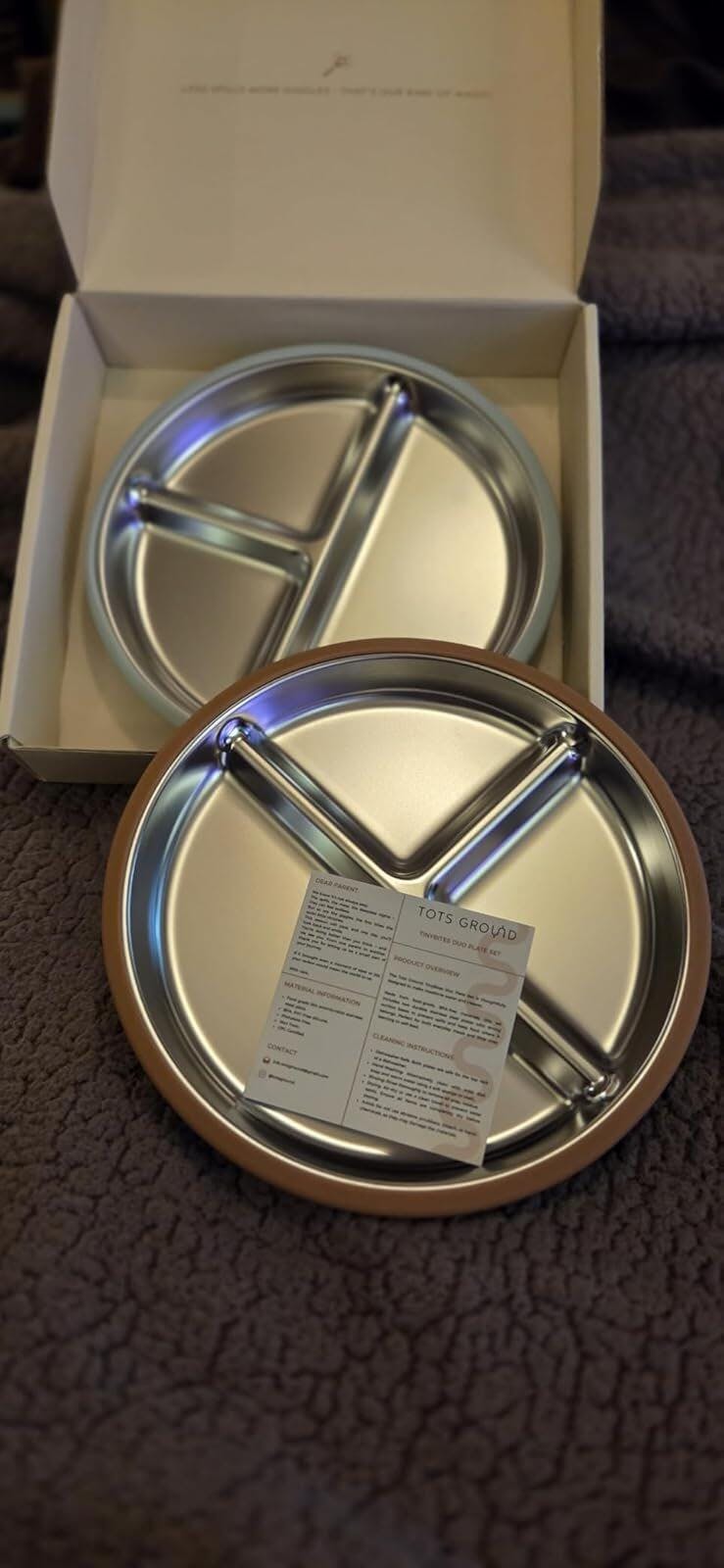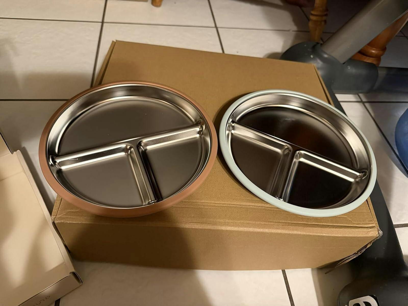 Great stainless steel plates. Super easy-to-use. Very easy to clean. Great sizes and colors. A must have for toddlers.