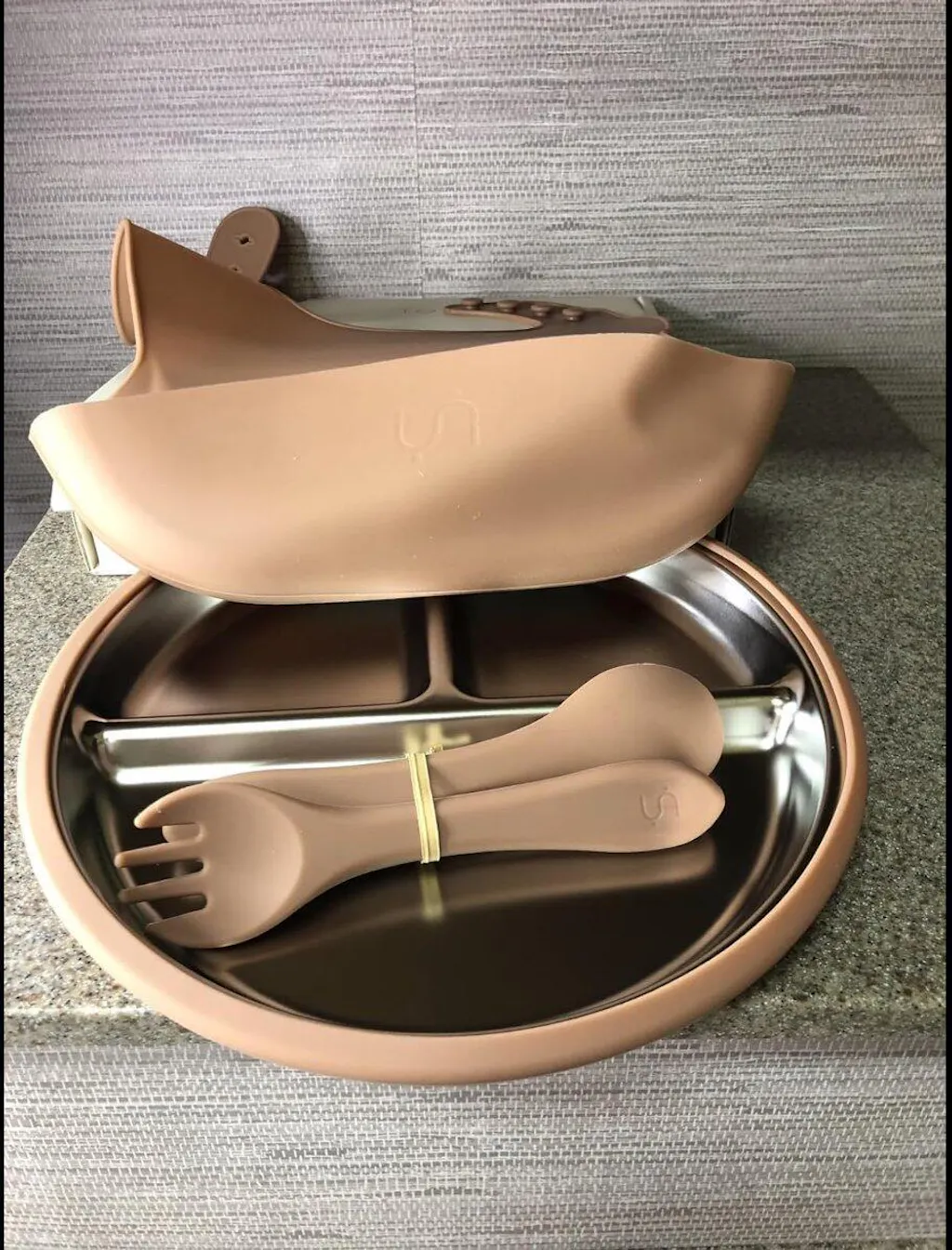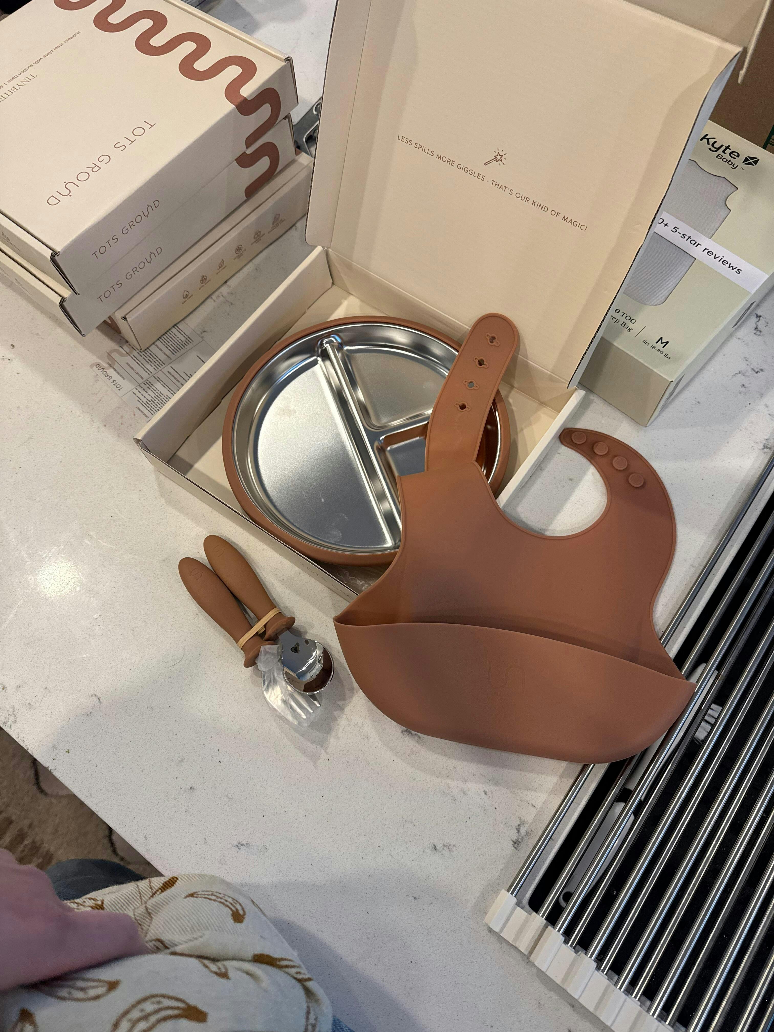 I’m really impressed with this Tots Ground feeding set! Not only does it come in such a beautiful gender neutral color, but its also super practical. Im lowkey obsessed with the Mocha Mousse color. It’s a nice neutral, elegant vibe and doesn’t scream “baby,” which I love a lot. It looks great on our kitchen table and the set feels very thoughtfully designed. The stainless steel suction plate is one of the highlights for me. It has good weight to it and really stays put on various surfaces (counter marble, plastic highchair) It feels like a healthier, longer-lasting option and is super easy to clean. The silicone bib is soft and flexible, and the pouch can catch dropped food, which saves in food waste and clean up (despite my black lab wishing the food dropped to the ground). The spoon and fork are a nice easy silicone for little hands to grip.I got this set as part of prepping for solids, but I can already tell we’ll be using it well into the toddler years. It’s a great giftable option too, it def feels a step up from your typical plastic baby dishware. Would def recommend and pick this up in another color!