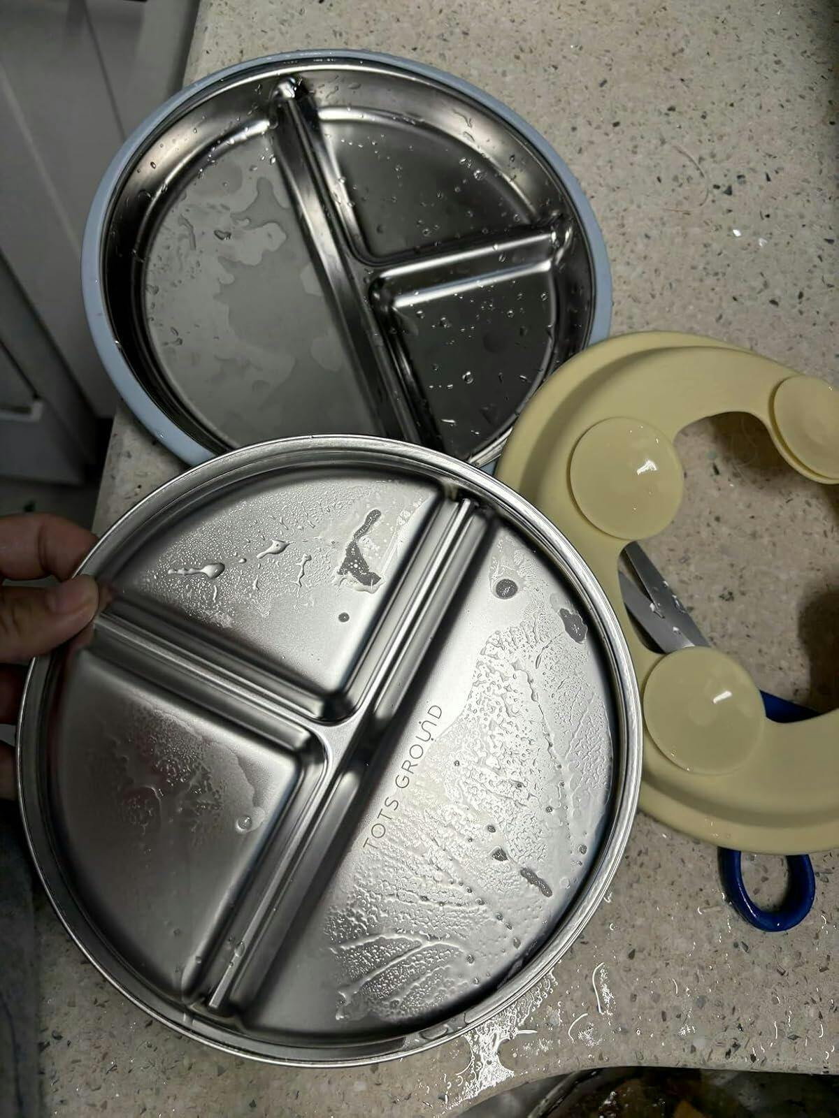 Love these stainless steel divided suction plates. The design of these are handy for putting different foods in the dividers so the food don’t touch. It also gives baby’s learning to eat on their own a choice of what food they want first. They are a good size, super sturdy and the suction is amazing. The plates come out of the silicone sleeve for easy cleaning, also dishwasher and sterilizer safe materials. If you have a baby or toddler these are a great addition for feeding time. Anyone who has a little one knows a regular plate is not ideal. Non suction plates can and will be flipped off the high chair and onto the floor!